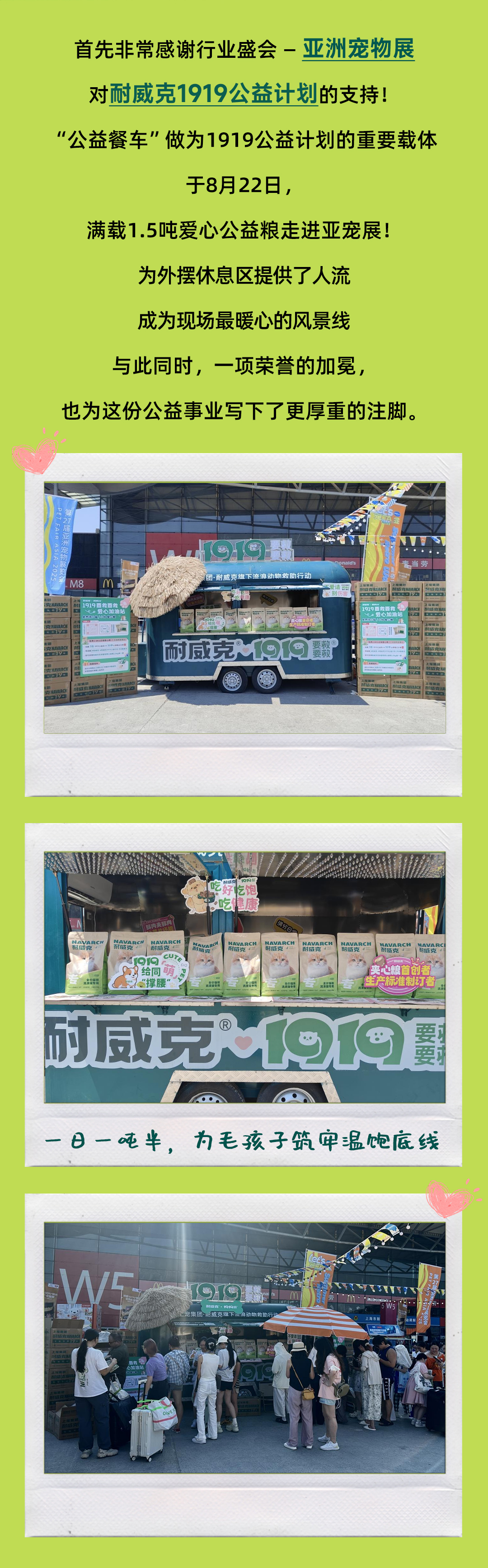 您當(dāng)前的位置:首頁 > 關(guān)于耐威克 > 企業(yè)新聞 > 一日一噸半,為毛孩子筑牢溫飽底線!耐威克1919公益計(jì)劃走進(jìn)亞寵展!