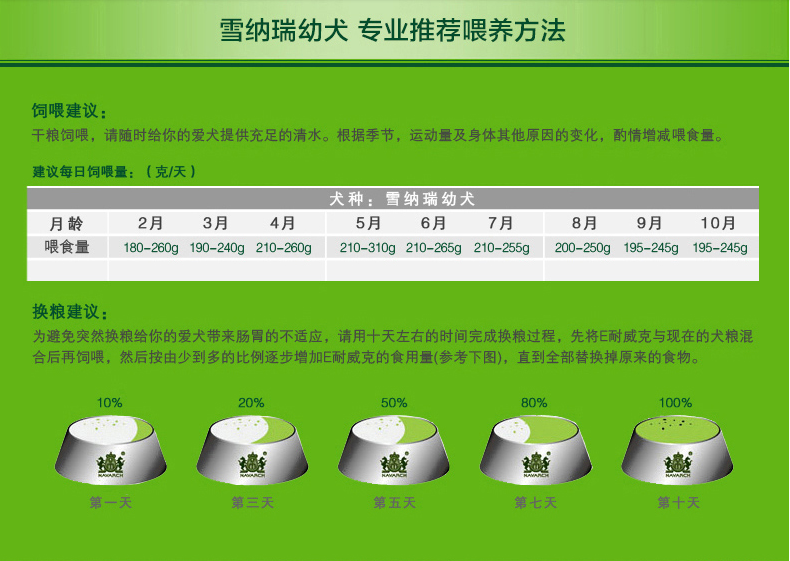 干糧飼喂,請隨時給您的愛犬提供充足的清水。根據(jù)季節(jié)、運動量及身體其他原因的變化,酌情增減喂食量。